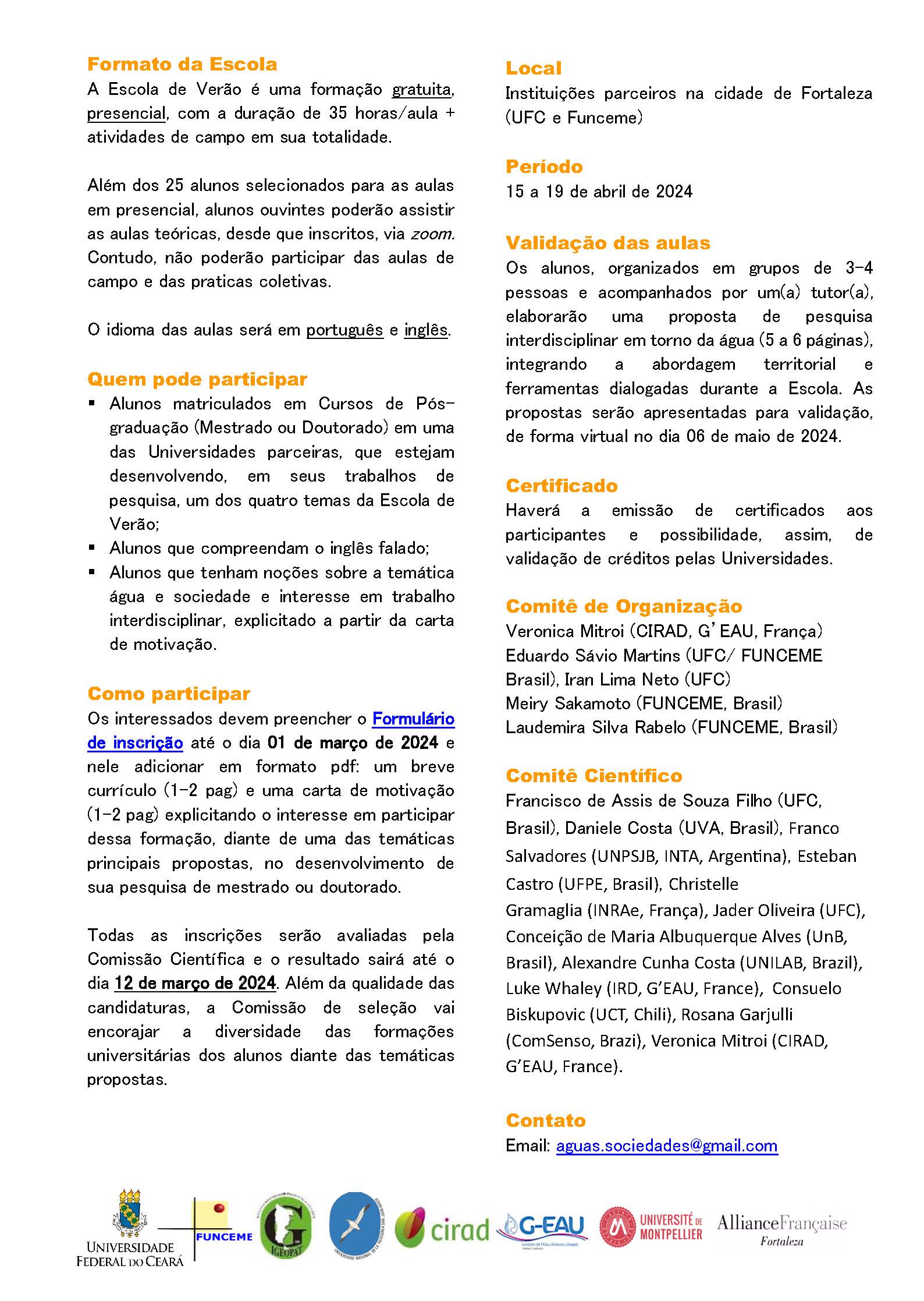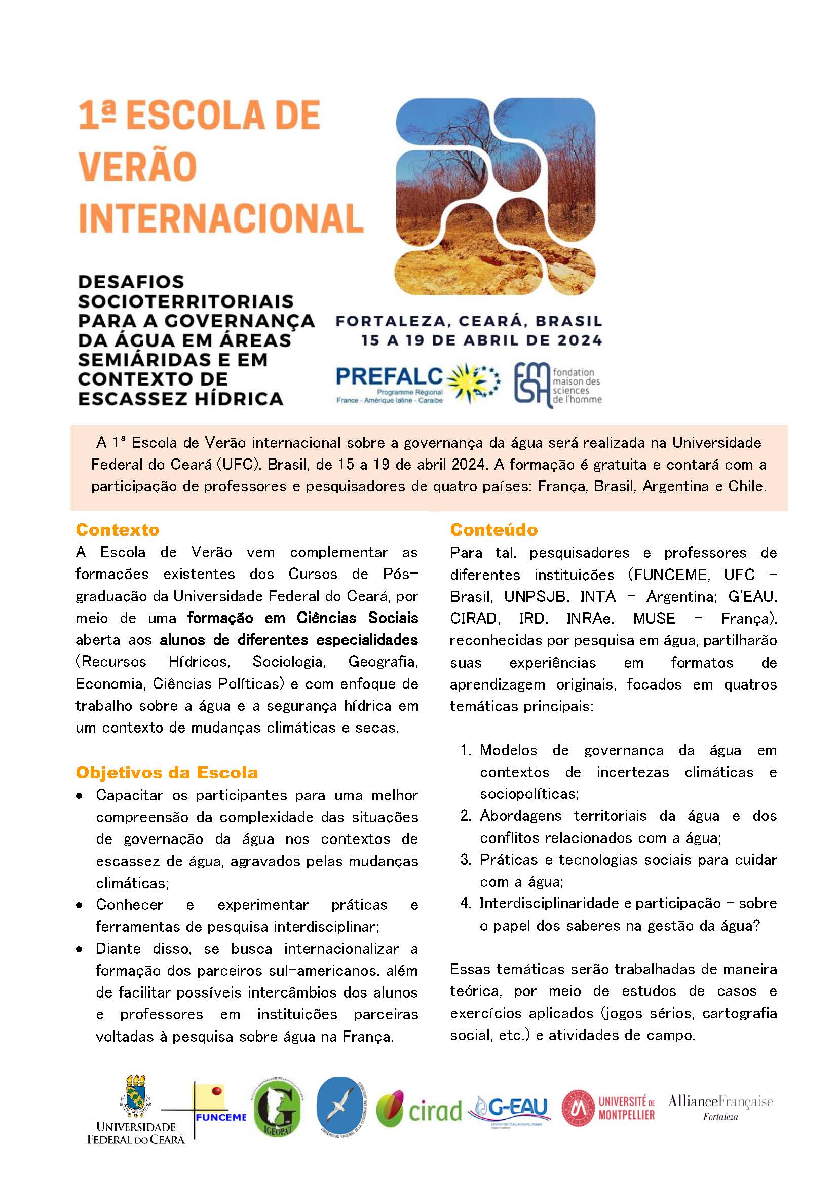 1ª Escola de Verão Internacional – Desafios socioterritoriais para a governança da água em áreas semiáridas e em contexto de escassez hídrica